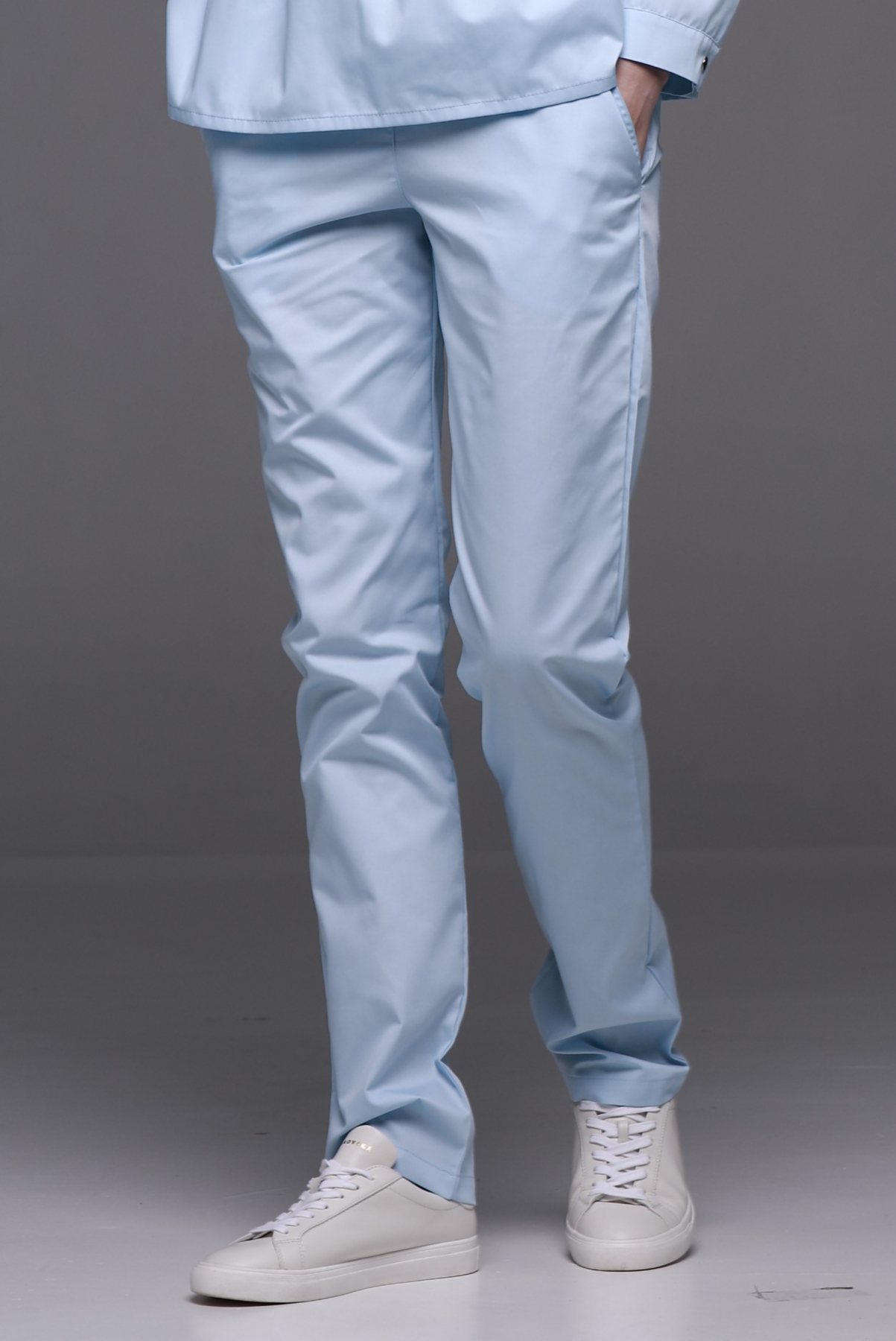 Брюки медичні жіночі завуженого покрою з двома передніми накладними кишенями. Пояс регулюється резинкою.