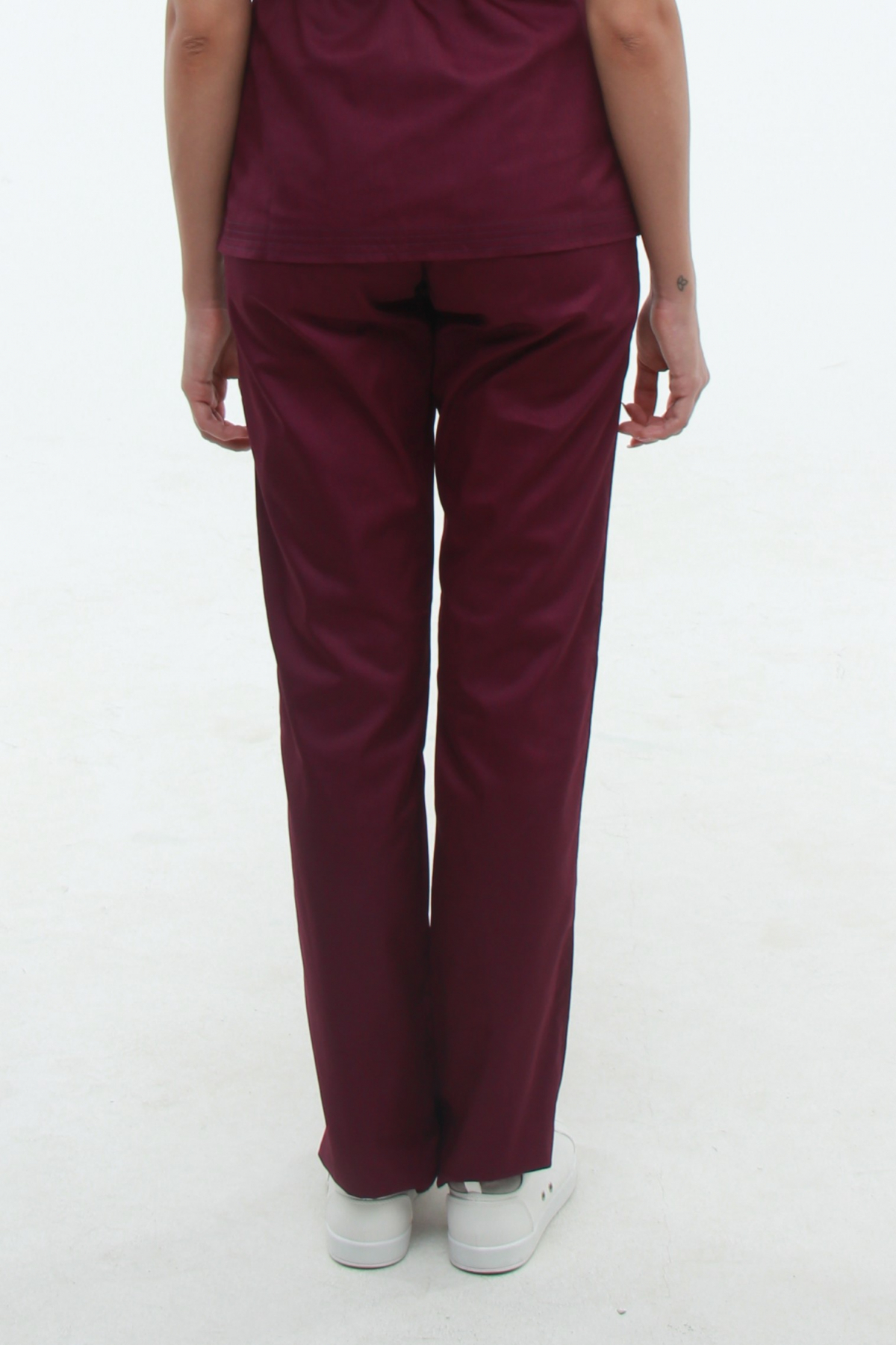 Штани медичні унісекс прямого крою з двома накладними кишенями. Пояс на штанах регулюється гумкою та тасьмою.