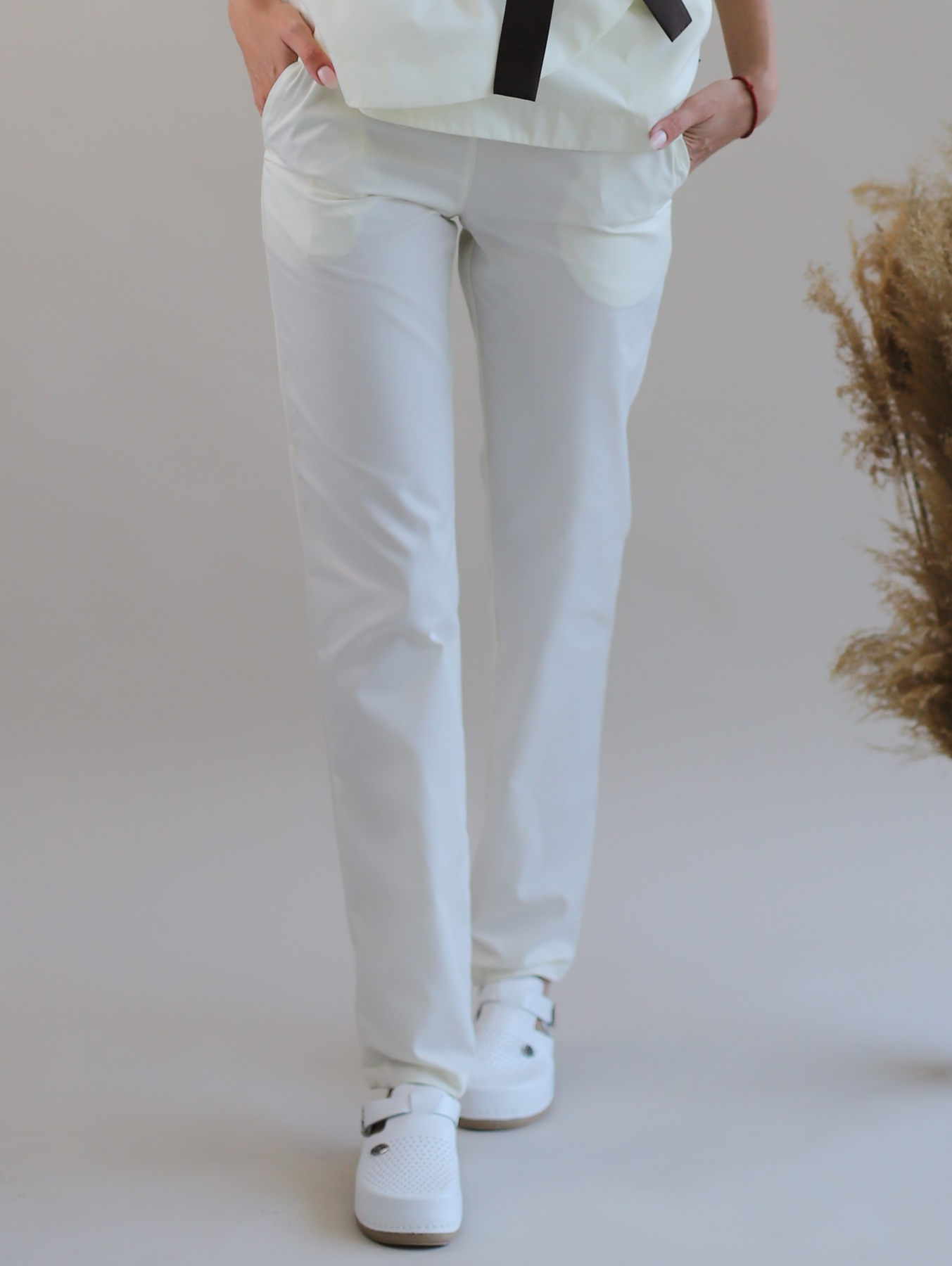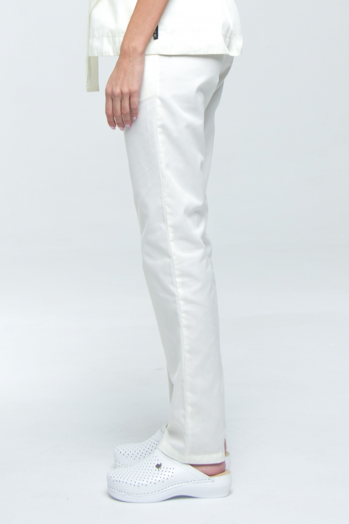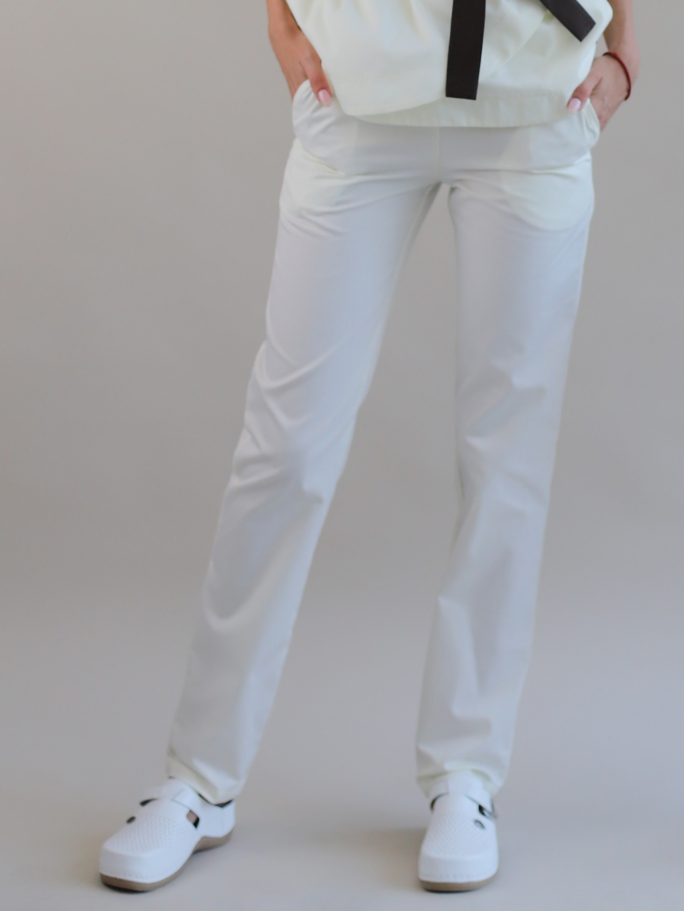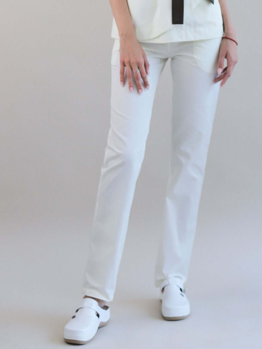 Штани медичні жіночі звуженого крою з двома передніми накладними кишенями. Пояс регулюється резинкою.