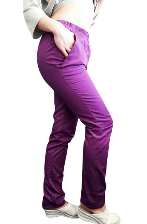 Штани медичні жіночі звуженого крою з двома передніми накладними кишенями. Пояс регулюється резинкою.
